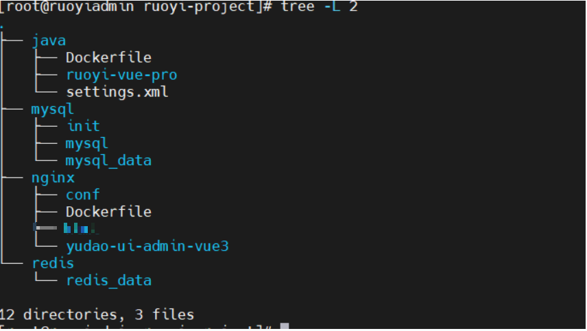 mkdir -p ruoyi-project/{redis,nginx,mysql,java}